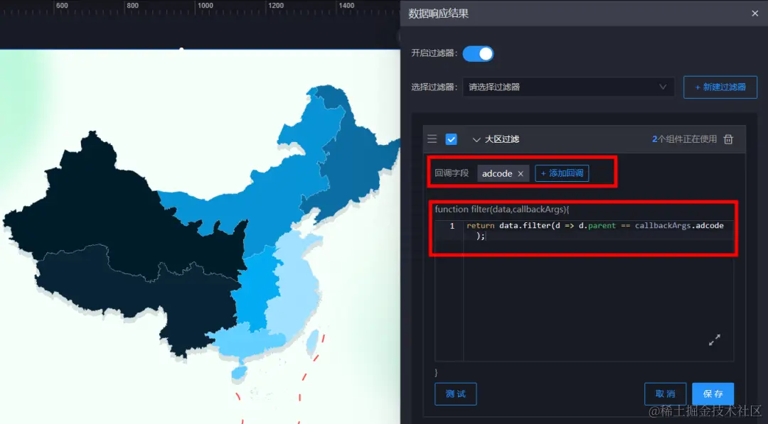 这一步的作用是为了点击大区的时候只看到属于它的省份热力值,呼应上文的操作~