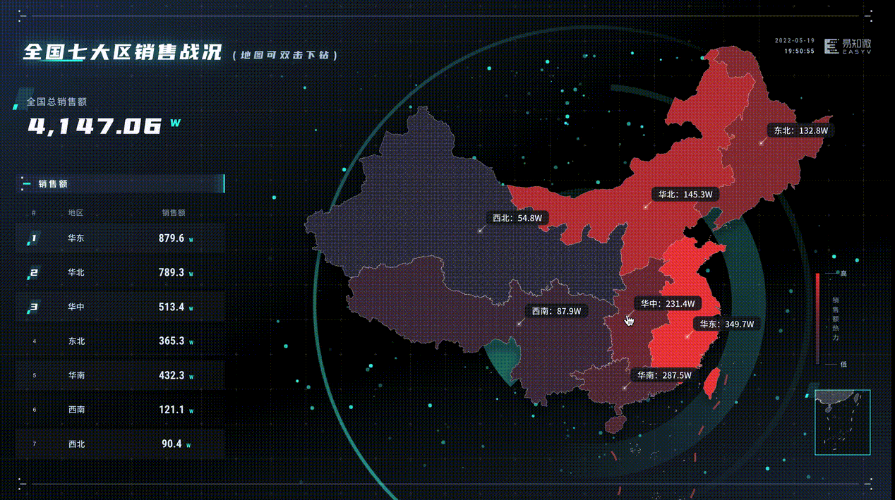 易知微官网还有更多精美的地图下钻热力图素材模板,总会有老板喜欢的一款~