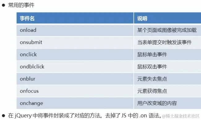 下面的这些事件里,在jQuery中就是将on给去除掉了