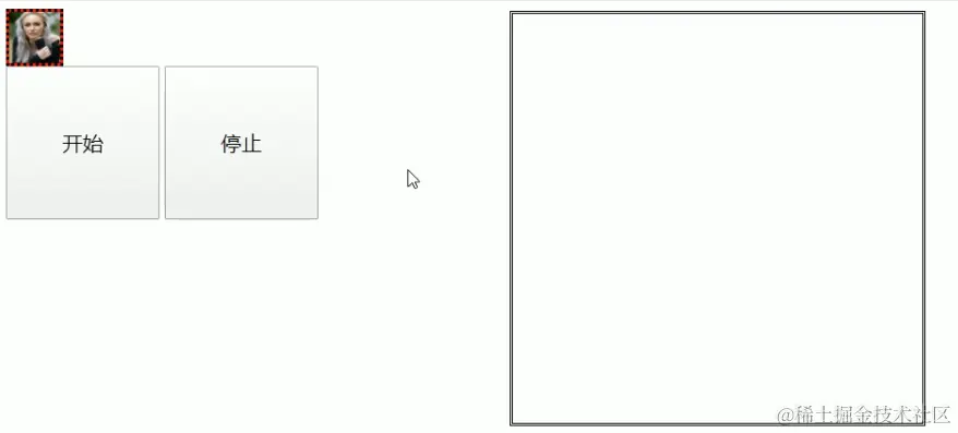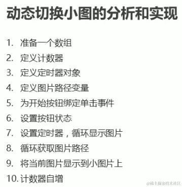 点击开始会在大图小图里不断切换图片,选择停止就展示一个,就这么简单