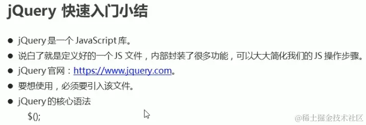 学习完了JS之后,我们来学习jQuery,首先我们先来进行一个快速入门的学习
