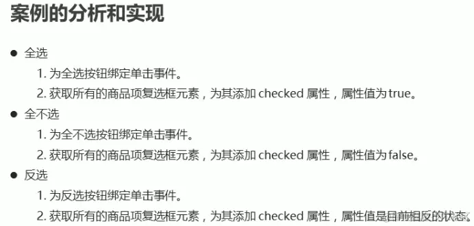 //2.获取所有的商品复选框元素,为其添加checked属性,属性值false