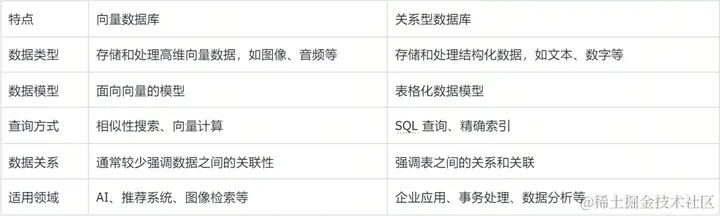 为了解答清楚这个问题,我们需要了解一下向量数据库到底跟传统的关系型数据库有什么不同。