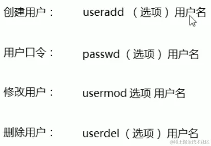 - Linux命令 --- 账号管理,具体的创建命令如下图,这里要注意的是创建用户可能会出现用户权限不足的情况,此时我们要切回到最高权限的账户进行对应的用户创建。其次是我们的密码设置必须是8位数的英文和数字的组合而且不能够是回文。这里的用户名指的就是我们要进行对应的用户进行的管理的用户名,各个单词间要有空格。