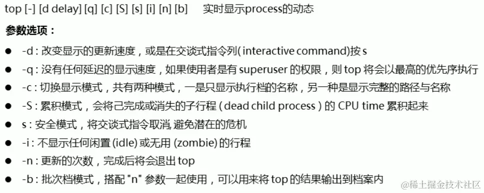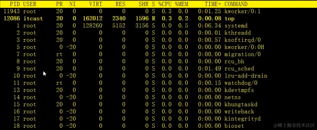 - Top命令,同样也是子命令很多,但是我们只要学习几个就够了