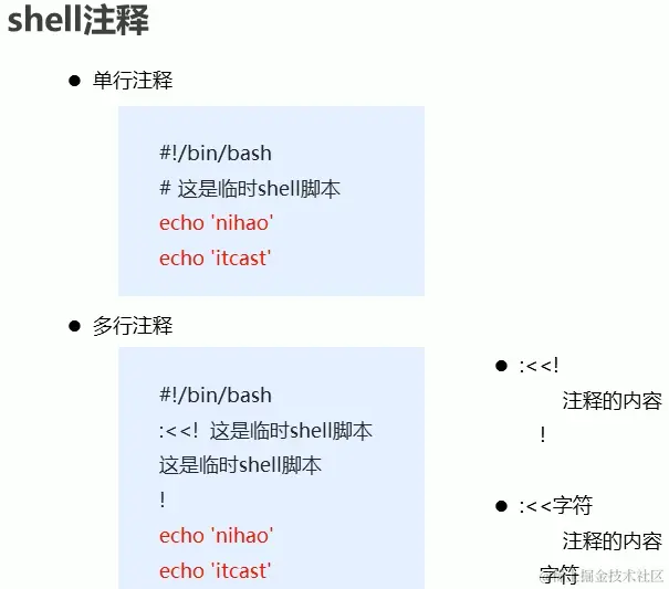 - shell注释,注释相关内容很好理解,这里就不多提了,直接看图吧