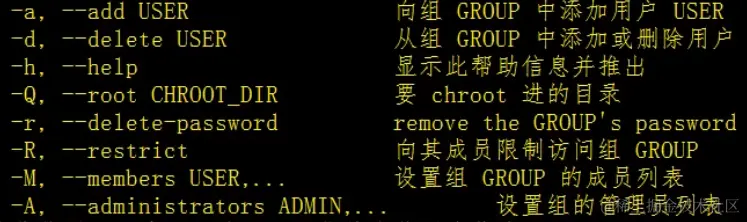 - Linux命令 --- 管理组内成员,这里我们主要使用的命令是gpasswd,该命令可以将用户添加或将成员从组中删除。内部还有更加具体的方法,不过我们先记住删除和添加就可以了,添加是-a,删除是-r
