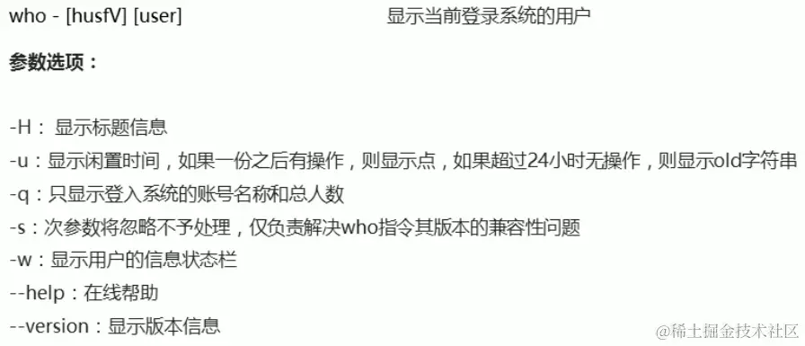 如果我们哪天忘了具体的方法有哪些,那也不要紧,我们只要调用su命令里的help命令就可以显示出su内部的所有方法了,其语法是su --help