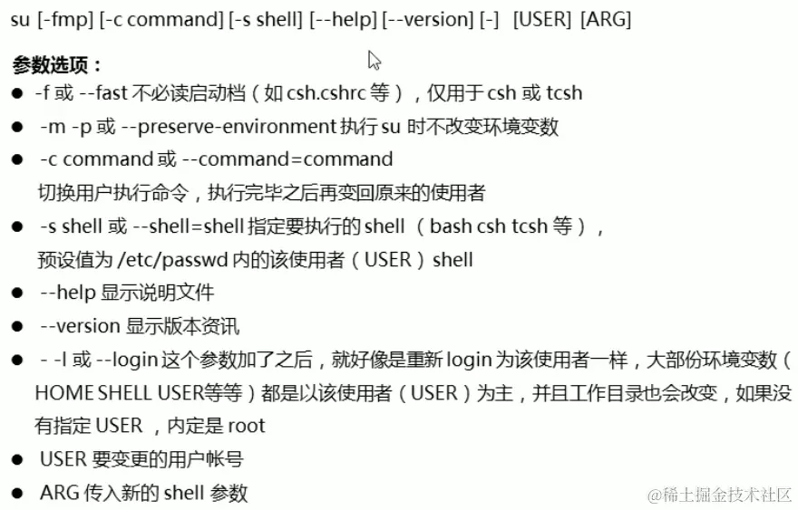 不过值得一提的是,这个命令之下有很多子命令,不过都是了解内容,我们只要记住一个最常用的切换用户的命令就可以了