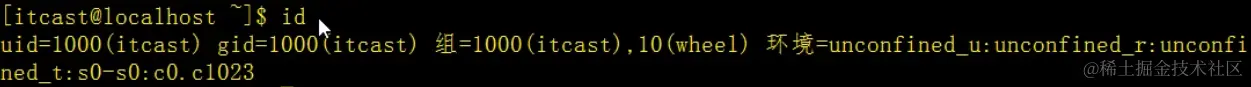 这里显示的uid就是用户itcast自己的id,而gid是itcast的组id,后面的组具体是显示itcast在哪个组