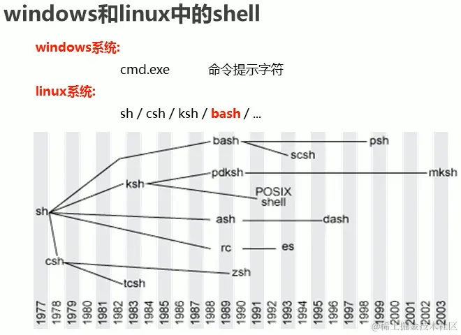 Windows中的Shell其实就是cmd,也就是命令提示字符。而在Linux系统中的shell则有很多种,但我们只需要记住,Linux系统默认的shell都是bash