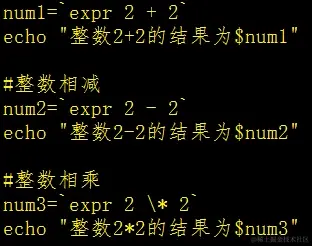 这里要注意的是由于原生的bash不支持简单的数学运算,我们可以通过其他命令来实现,这个命令就是.expr,其次是表达式和运算符之间要有空格,最后是完整的表达式要被反引号包括。我们可以举个例子expr 2 + 2,这个例子就满足了上面三个条件,是一个正确的表达句