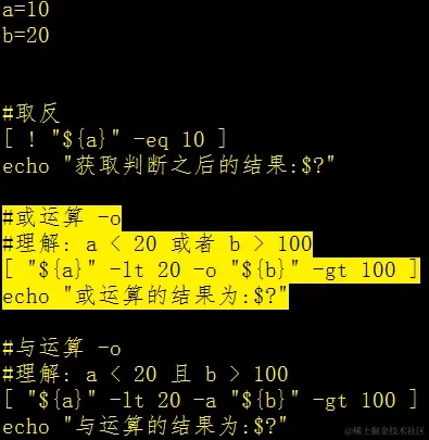 这里取反其实就相当于是java中的!,而-o则相当于java中的||,-a相当于是java中的&&,我们可以写入如下代码