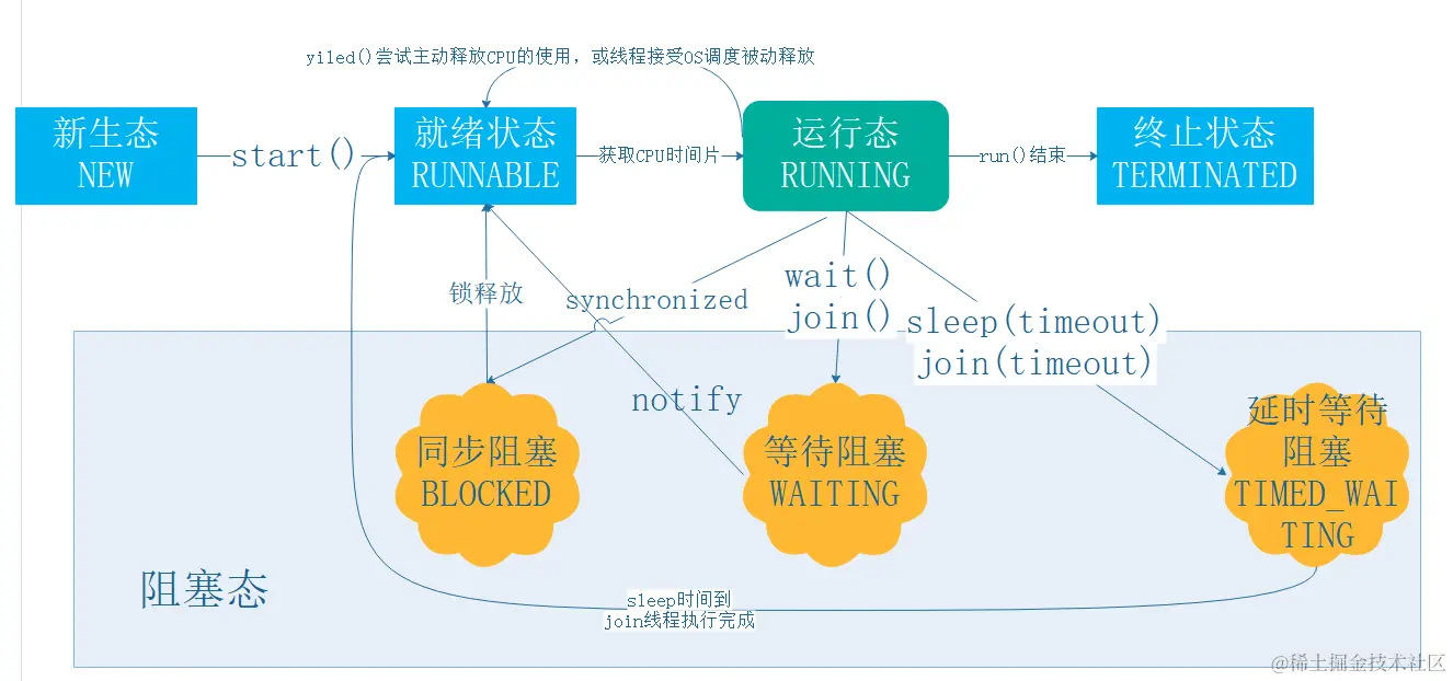 新建(New)状态:当线程对象被创建但还没有调用start()方法时,线程处于新建状态。此时,线程已经被创建但还没有启动执行。
