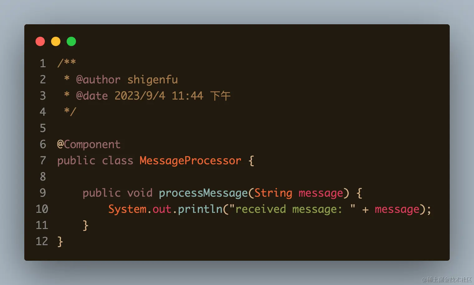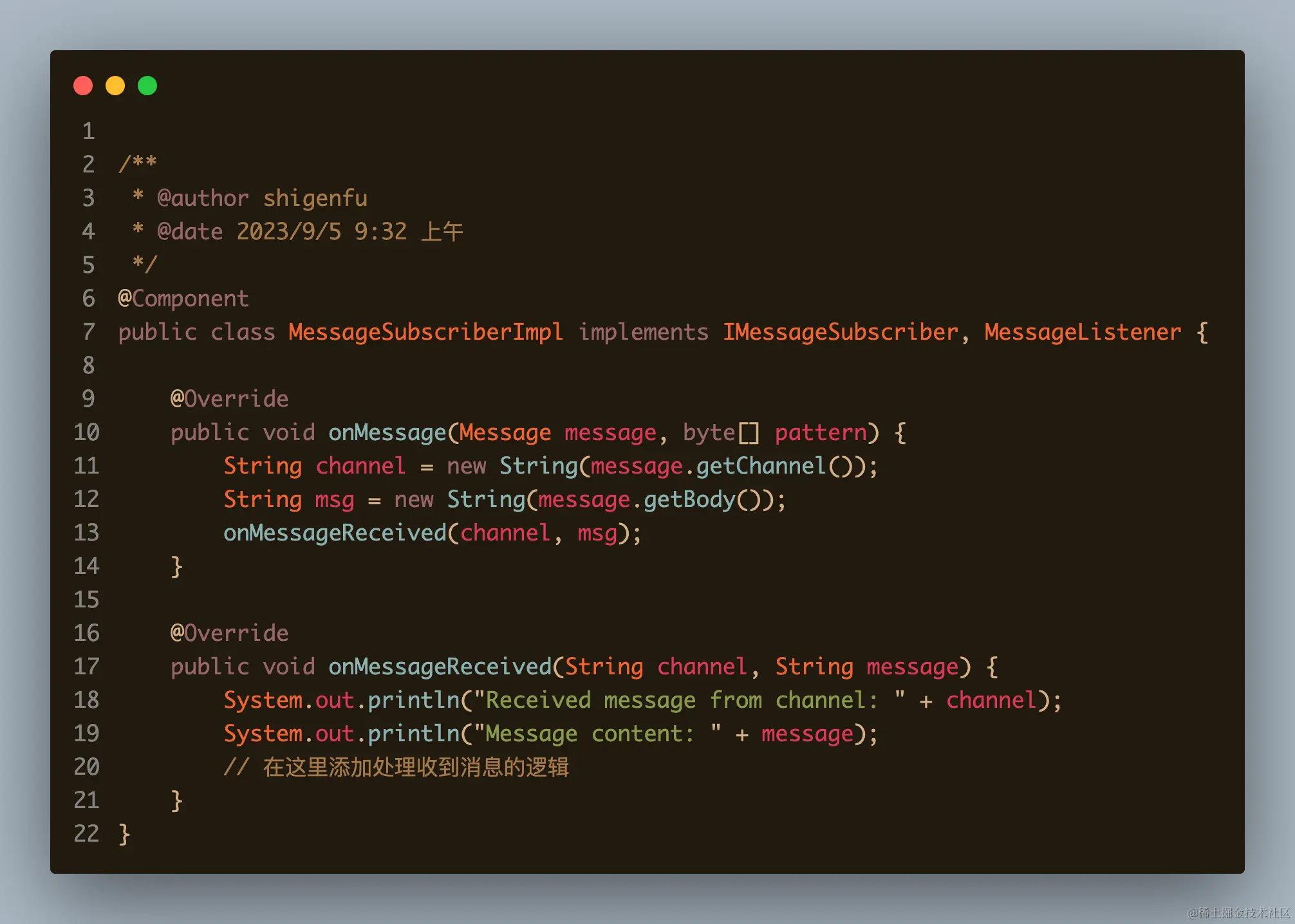 这个类或者说是组件主要是处理消息,这里简单的在控制台输出打印。
