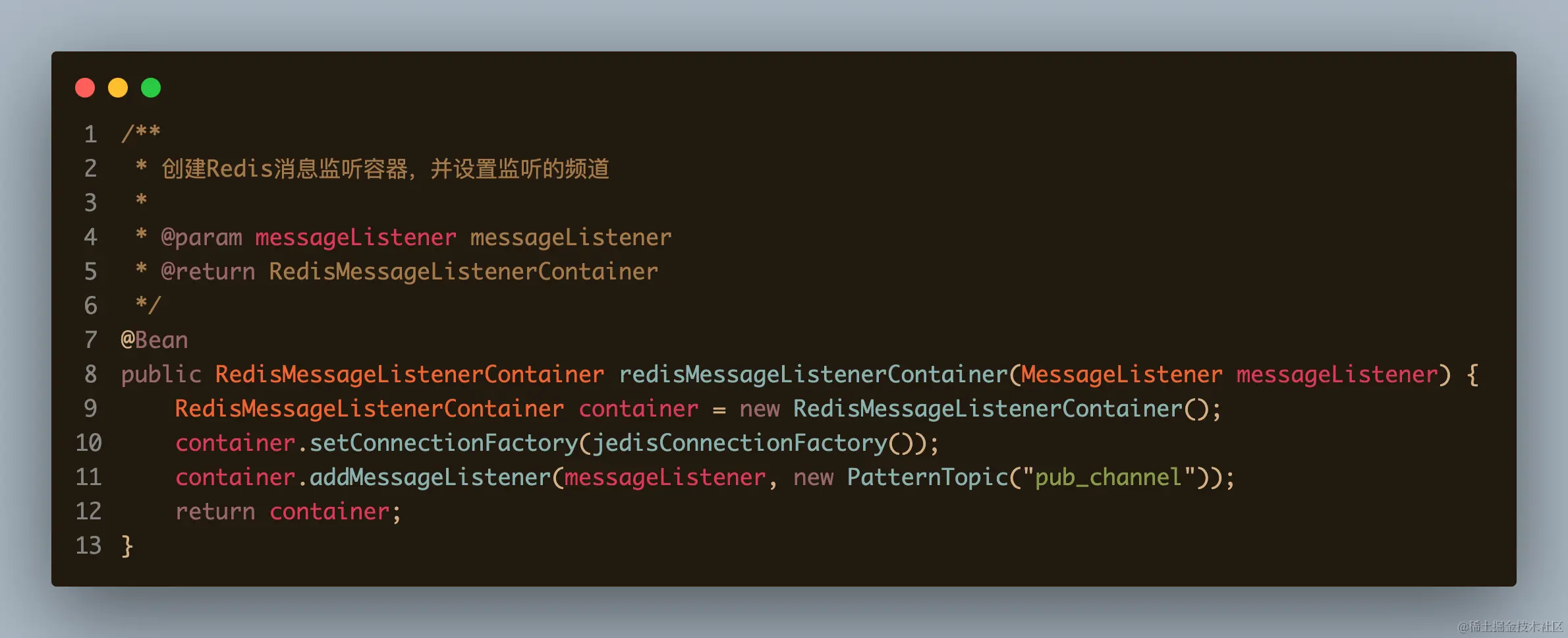 container.addMessageListener(messageListener, new PatternTopic("pub_channel"));