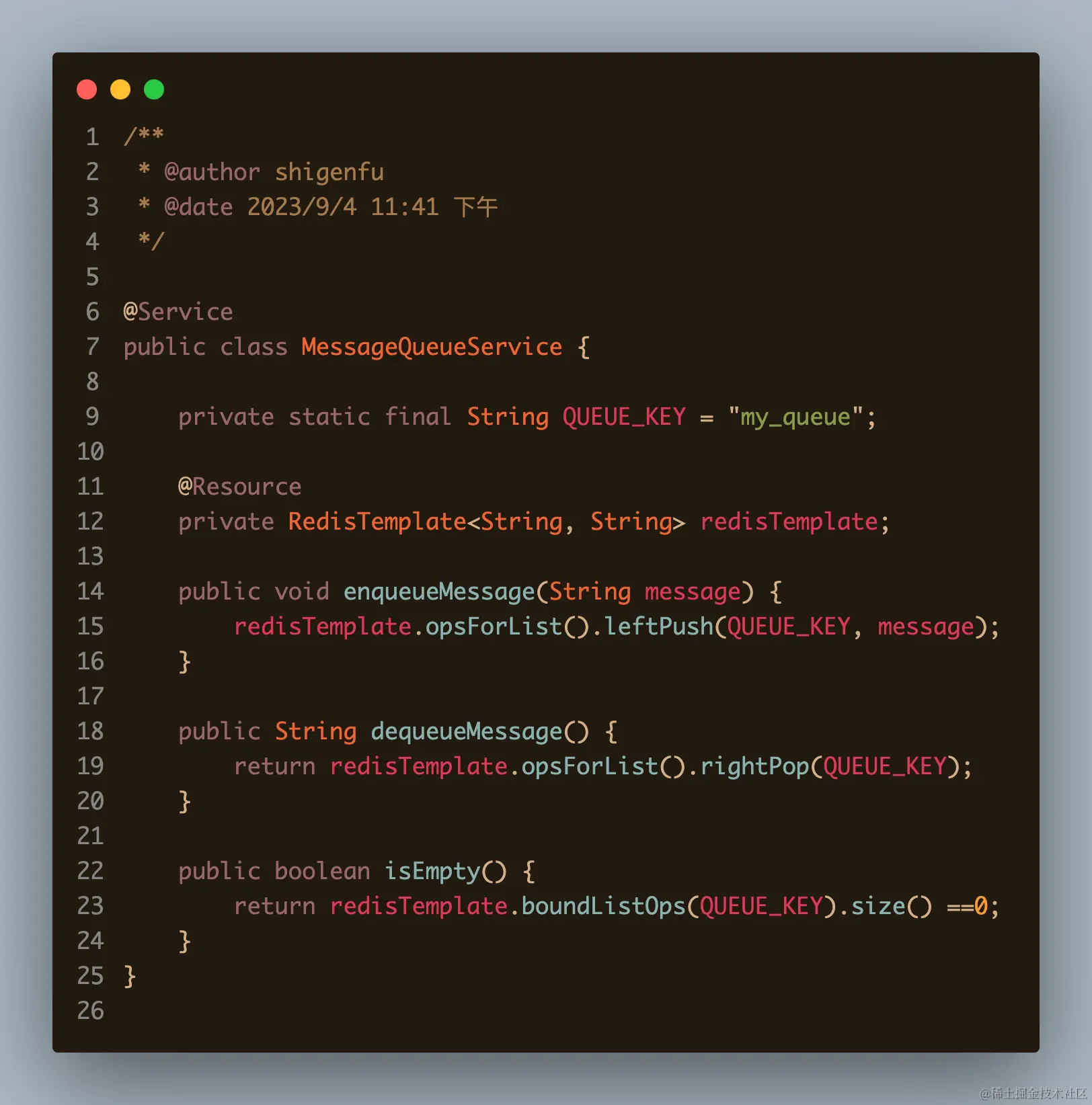 主要的是三个方法,发送数据、消费数据和判断消息队列是否为空。