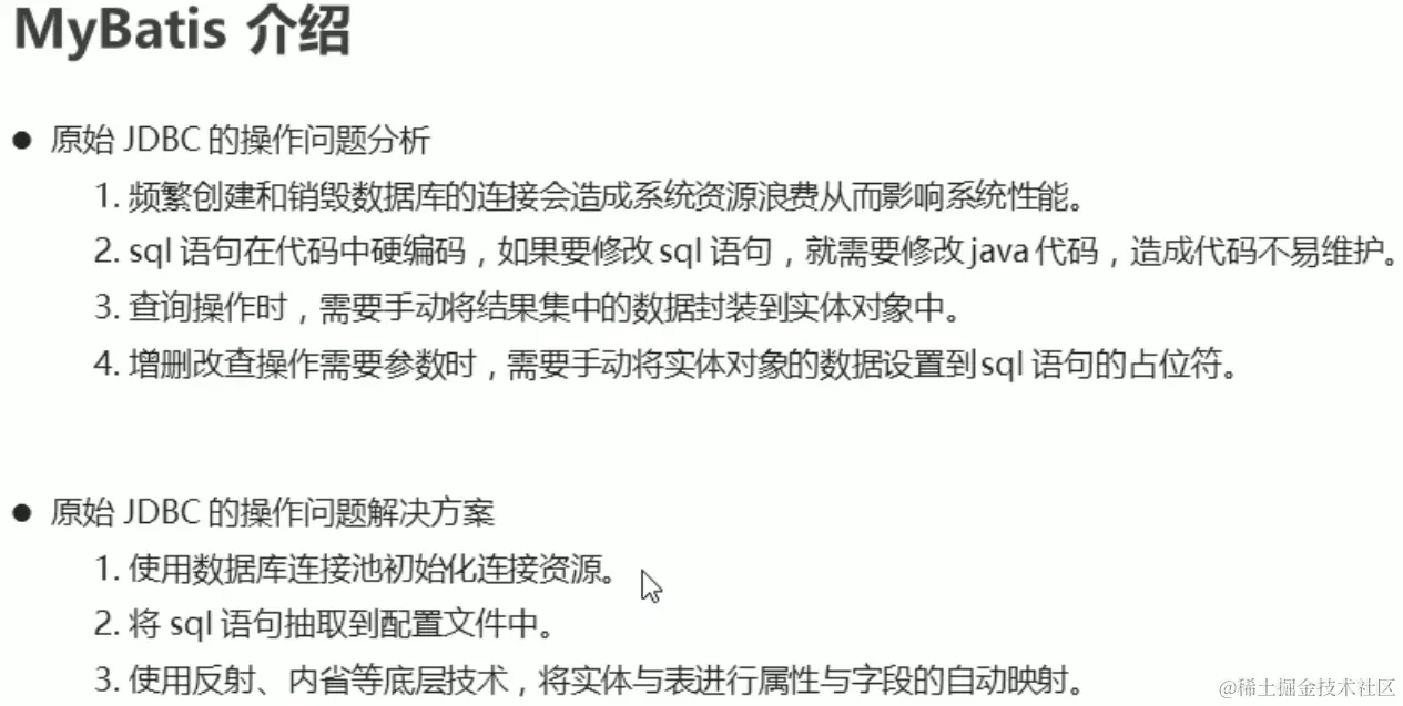 在正式介绍MyBatis之前,我们要先了解下我们之前的JDBC框架的不足和改进方法,请看下图