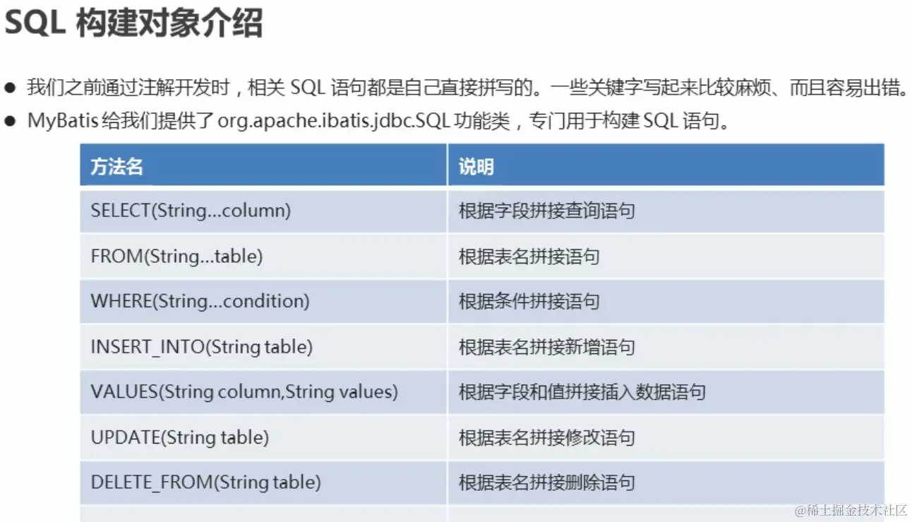 接着我们来实现我们的查询功能,构建查询全部的SQL我们上一节已经学习过了,所以这不是难点。这里难点在于我们怎么将我们生成的sql语句加入到我们的注解中。这时,就得靠我们的SelectProvider注解了