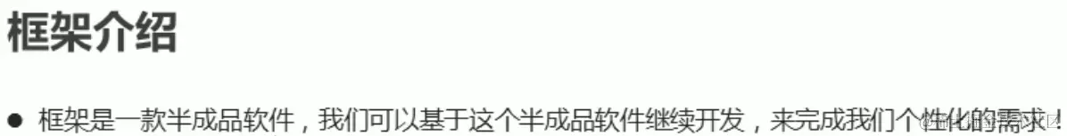 框架其实就是一款半成品软件,我们可以程序员可以基于这个软件继续开发来完成个性化的定制需求。如果以盖房子为例,那么框架就相当于是房子本身,我们程序员要做的事情就是给房子涂上我们所需要的颜色