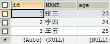 INSERT INTO student VALUES (1,'张三',23),(2,'李四',24),(3,'王五',25);