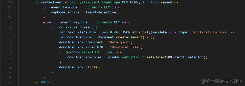 监听键盘事件,i键可以开启和关闭地图编辑器,w键可以保存当前阻挡信息并且下载(需要用浏览器运行程序)