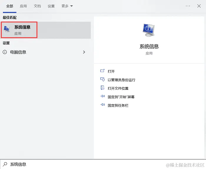第一步:在搜索栏搜索 “系统信息” ,打开它。