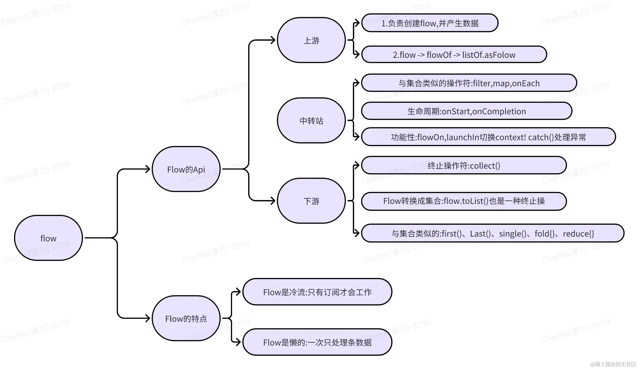 Flow从字面意思理解就是流,Flow除了有发送方和接收方之外还可以有中转站,什么是中转站呢,中转站就是我们常用的中间操作符。比如 : .filter() .map()等等