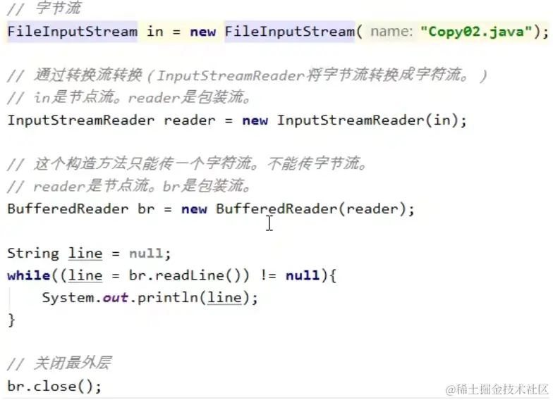 BufferedReader的构造方法是要求传一个字符流进去的,而如果我们创建了一个字节流,那我们将其传入的话编译器肯定是不会通过的,那此时我们就可以使用转换流来将字节流转换成字符流之后再传入