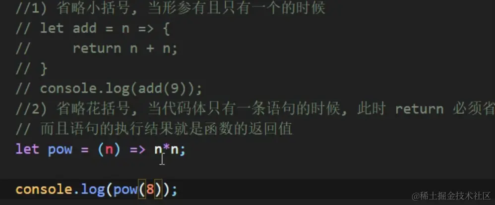 (2)关于箭头函数省略小括号,大括号: