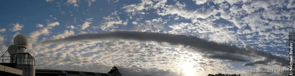 另外一类特殊的高积云种——“卷滚高积云(Ac vol)”,这是一种“较长,水平,分离,管状”的云团,因为看起来像绕水平轴缓慢滚动,所以被称为“卷滚高积云”。