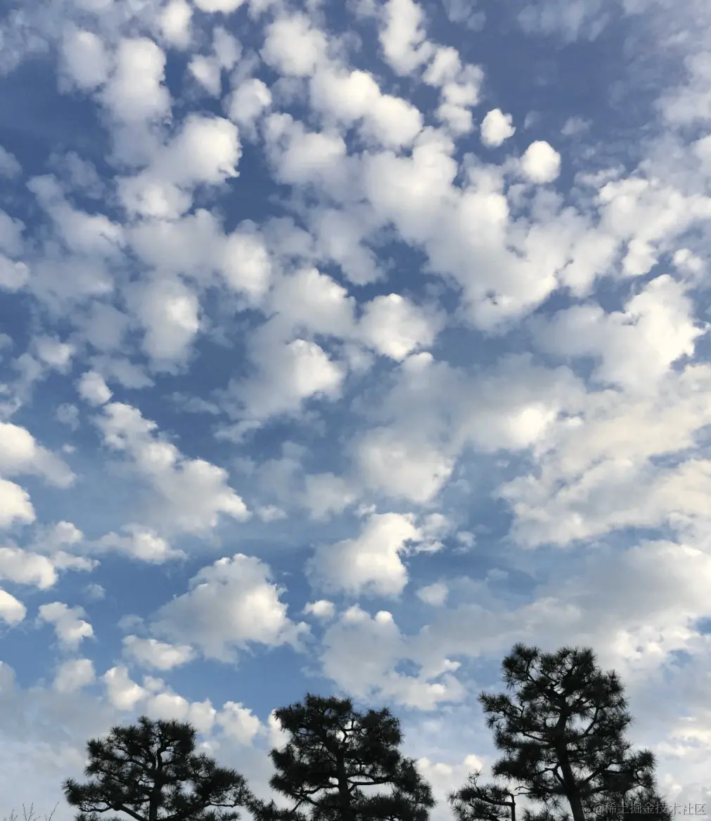 密卷云是块状的,单一块内分布较为密集,面向太阳的方向为灰色,通常在积雨云的上部形成。