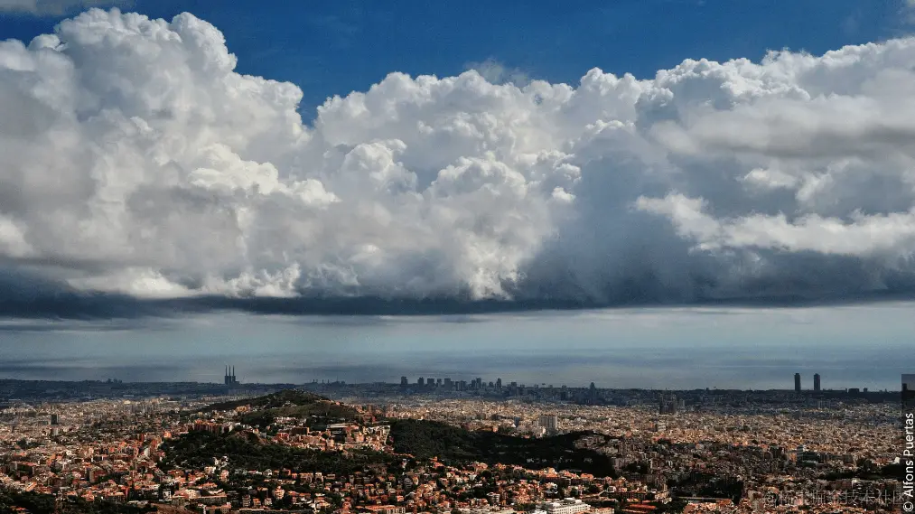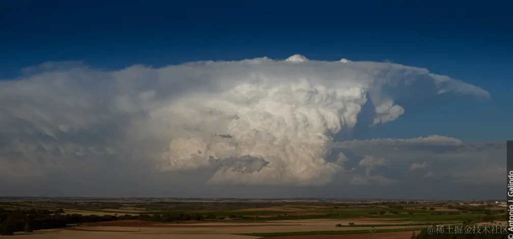 当然这是最典型的,这种厚重的积云往往出现在沿海城市,因为更容易有水蒸气升腾,它们被细分为一个云种——浓积云(Cu con)。对于浓积云来说顶部通常以”塔“的形式垂直发展,塔太高被风吹过时会瓦解,从而形成丰富的衍生云,浓积云会产生诸多形式的降水:降雨,降雪,极端天气下还会产生冰雹。