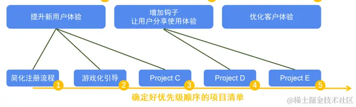 将大目标拆解为多个小目标时,我们需要了解「为什么要这样拆分」,不能为了拆分而拆分。结合用户反馈、调研数据等,产品经理们会明确每一步拆解的诉求和理由、每个细分项目的意义以及它们如何帮助达成公司的战略目标。