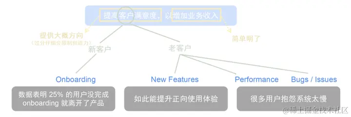 如果已知 75% 的受访用户评价 Onboarding 体验不好,却没人提及性能问题或生产缺陷,那么 Onboarding 就应该作为第一优先级的目标。