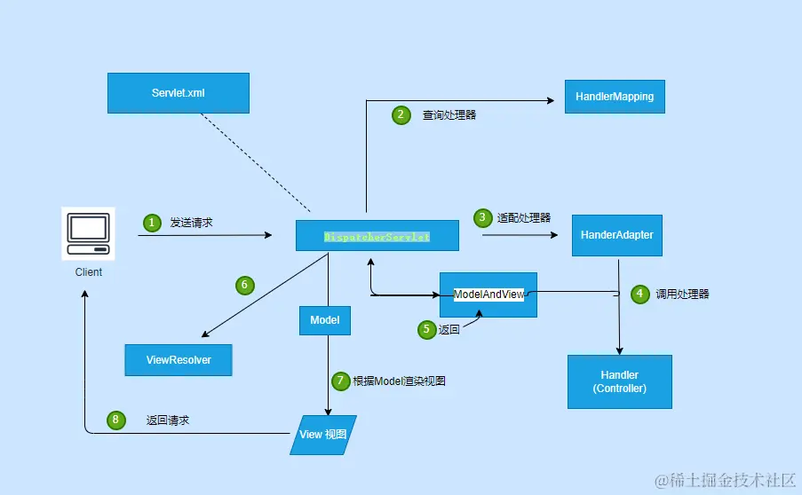 通过这个工作流程,DispatcherServlet 能够将客户端的请求分发给正确的控制器进行处理,并将处理结果渲染为视图返回给客户端。