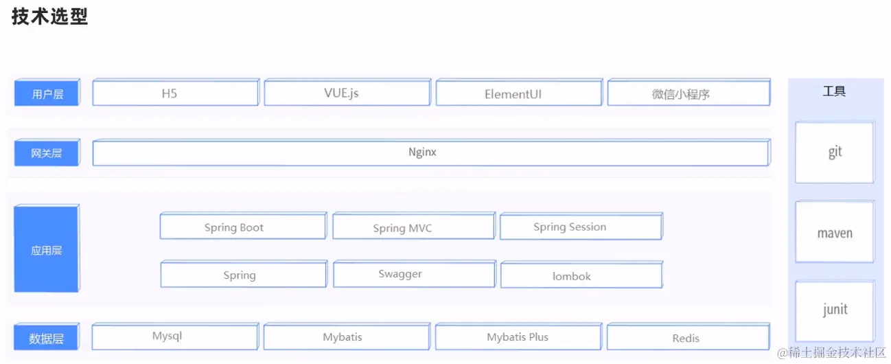 然后我们来看看我们的这个项目用得到的技术