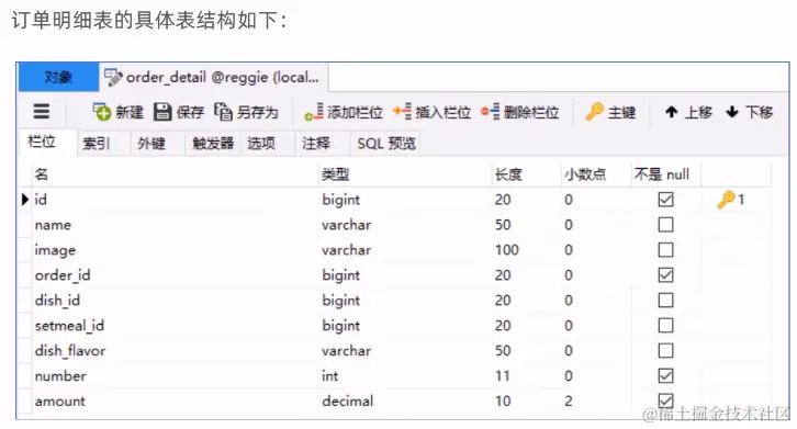 订单明细表则保存订单的详细信息包括点的菜品,套餐分别都是啥之类的