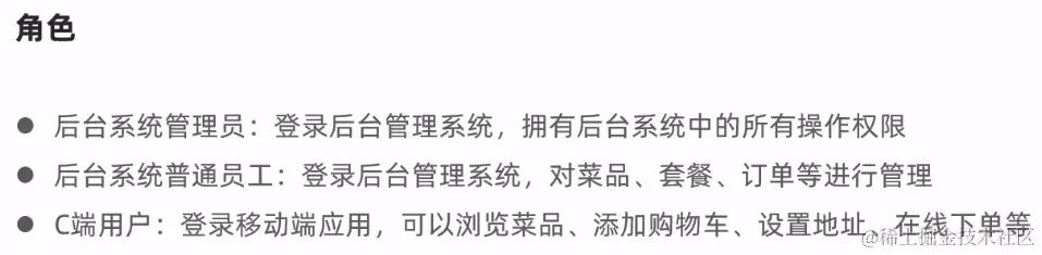 最后来看一下我们的项目所拥有的可能的角色及其他们应该具有的功能