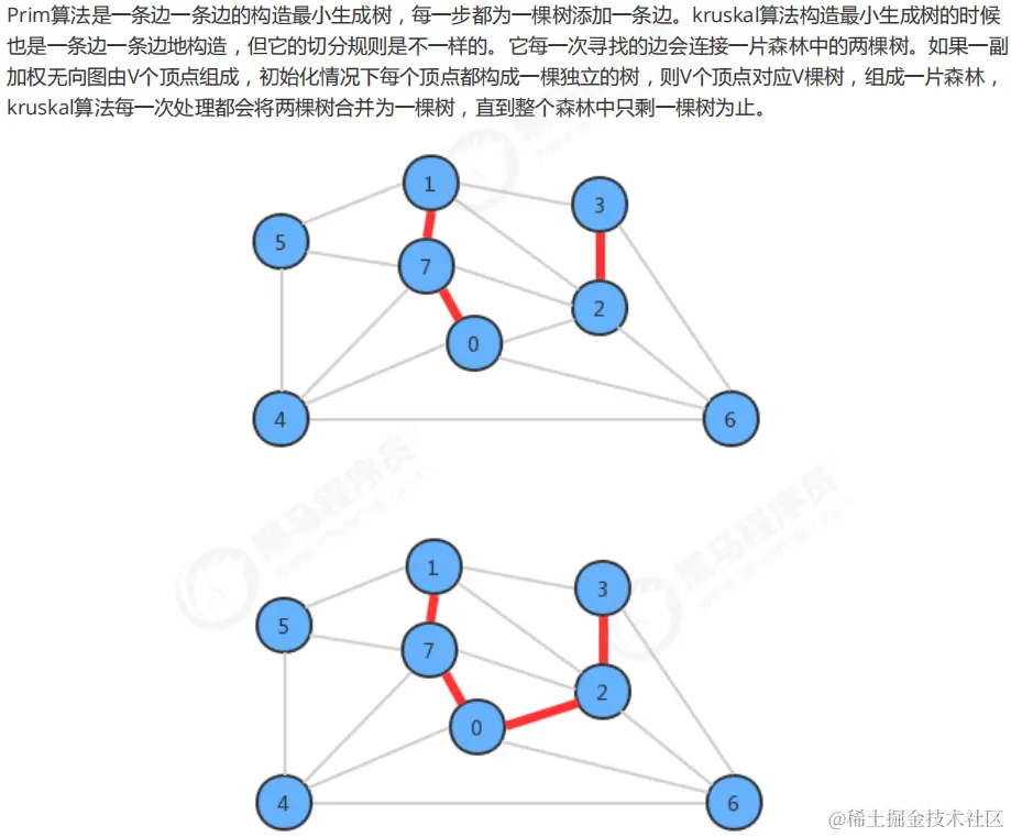 这里讲似乎不太明了,但是我们可以用演示和与prim算法的对比来直观感受kruskal算法