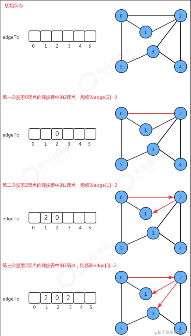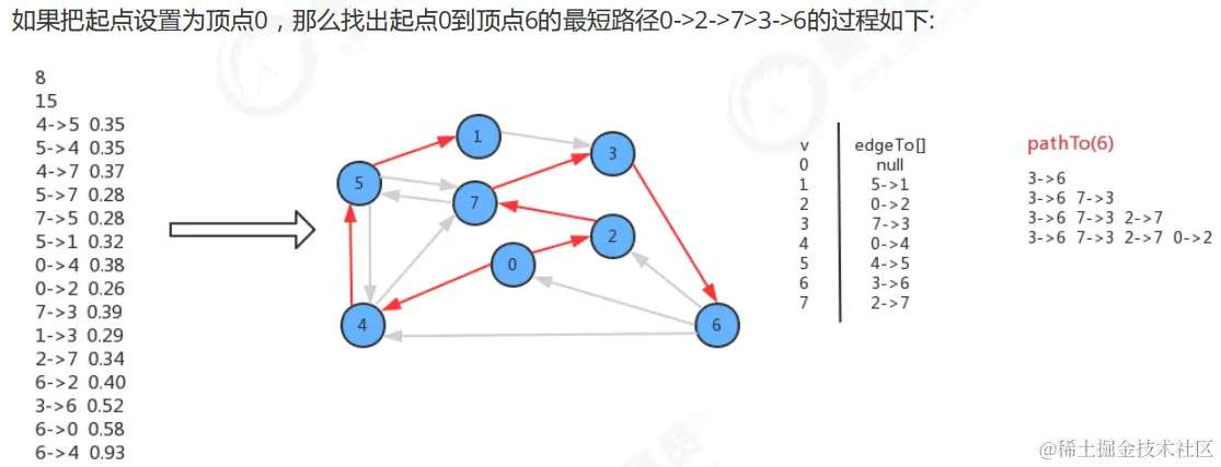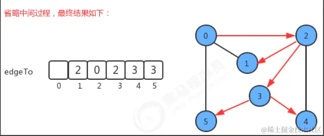 //遍历edgeTo数组,拿到每一条边,如果不为null,则添加到队列中,edgeTo里存放的是edge对象