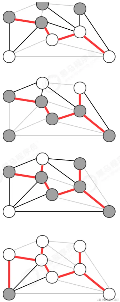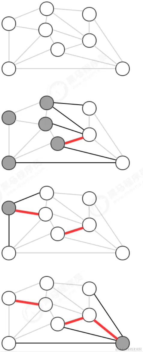 * 但是在visit方法中,又会往pq中添加最小生成树的对应点和横切边,因此其能够实现不断调用,最后