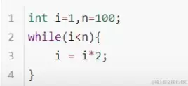 在这个代码里,我们可以设程序执行次数为x,即是假设有x个2相乘之后会跳出循环,则可得式子2^x=n;则可得x=log(2),其中x为程序执行的次数,即是我们平时用大O阶表示的n