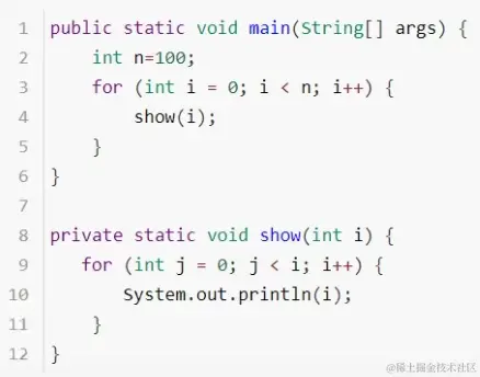 O(n^2)为平方阶,一般嵌套循环属于这种时间复杂度