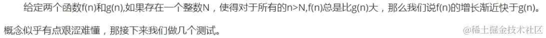 由此我们可以得出结论,随和输入规模的增大,与最高次项相乘的常数可以忽略
