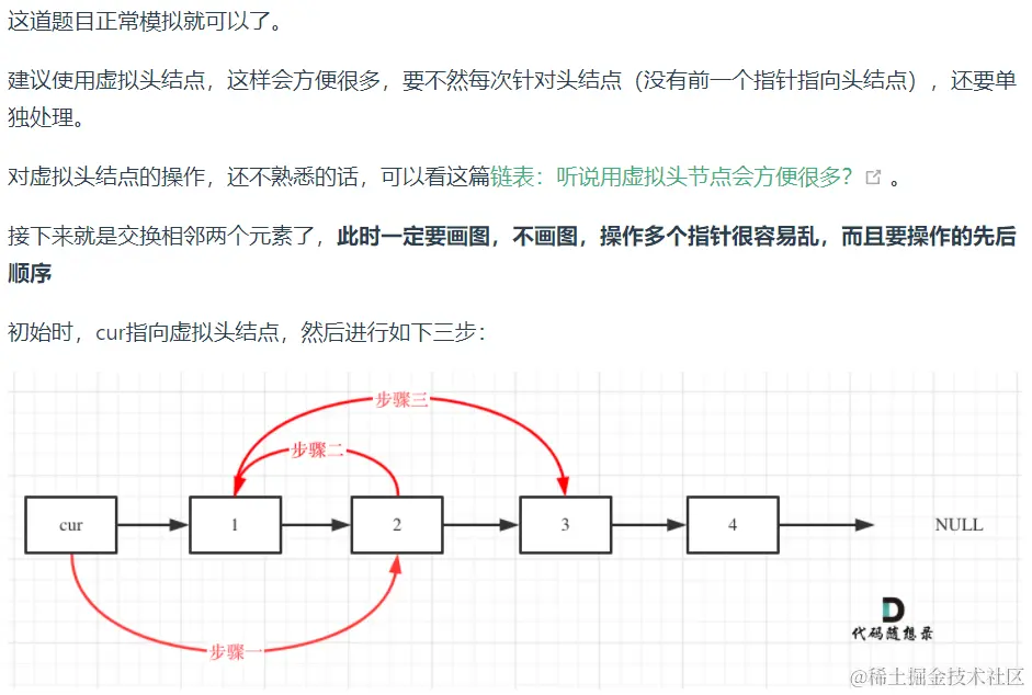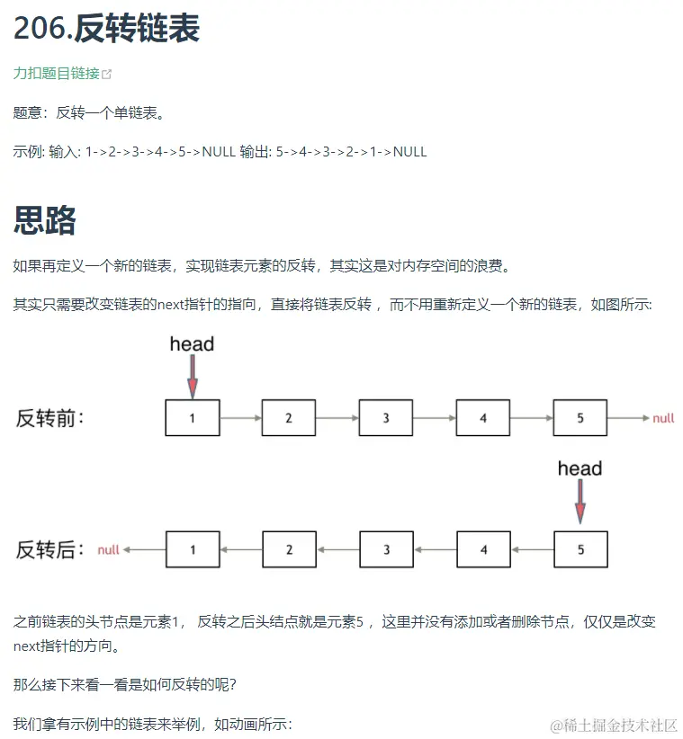 其次是双指针法,双指针法的关键在于定义双指针的起始位置,两个指针运动的规律,以及指针结束的条件,无论是何种双指针法,都遵从这三个原则。在链表里有时使用双指针法时,我们需要在每一次的循环里先获得第二个指针的下一个结点