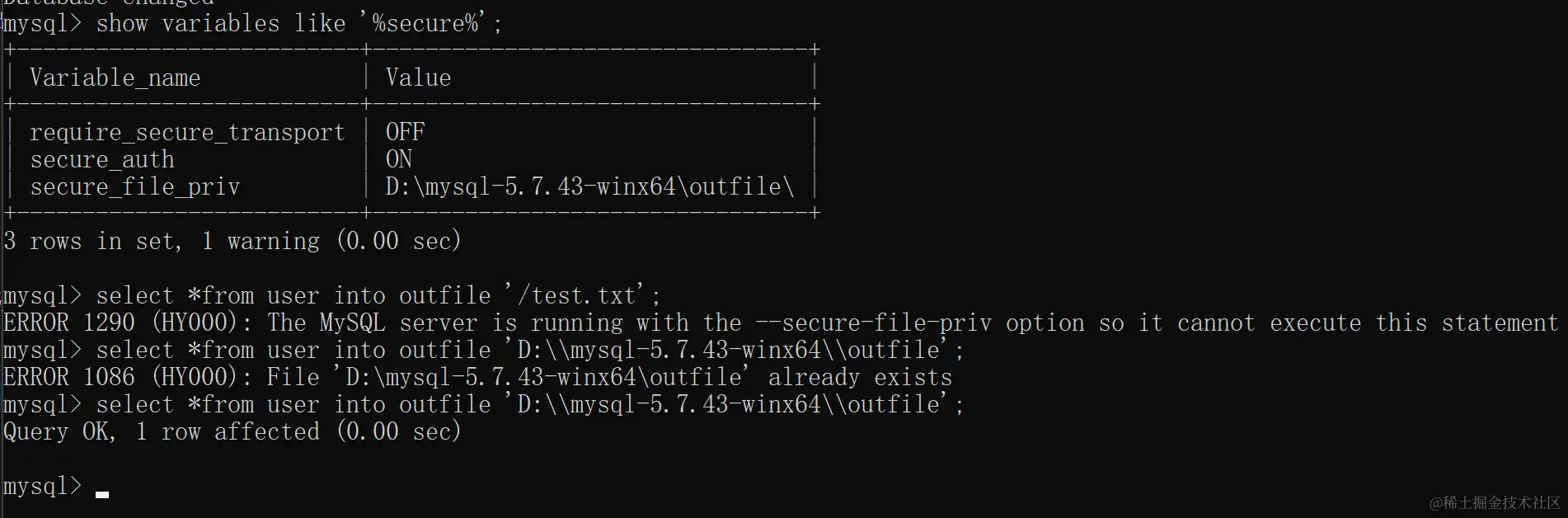 例如判断当前连接对这个表 user_info 有没有执行查询的权限,如果没有,就会返回没有权限的错误。错误如下(如果命中查询缓存,会在查询缓存返回结果的时候,做权限验证。查询也会在优化器之前调用 precheck 验证权限)。
