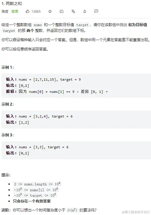 对于在数组里需要返回下标的题目,如果我们需要使用哈希表结构,一般选择Map结构。其实不止如此,对于任何需要比较一个对象,而返回的却是需要与该对象相关的另一个数据,我们都优先推荐使用Map集合。请看题目