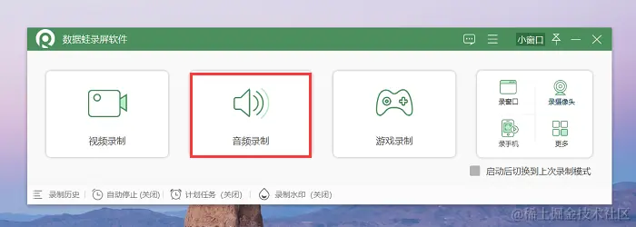 电脑自带录音机虽然方便,但是它功能比较单一,不能进行复杂的剪辑,推荐使用数据蛙录屏软件,它拥有专业的音频录制模式,可以录制清晰优质的音频文件。