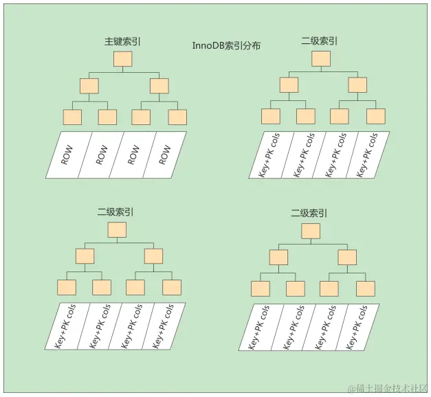 正因为这种类型的索引需要查找2棵B+树才可以得到最终的查询结果,因此被称为二级索引!